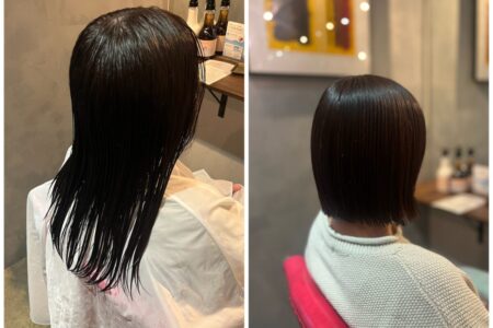 こんにちは😊Renyのスタイリストのさきです🦊 今回はお友達のバッサリカットを任せてもらいました✂️ 結婚式のために伸ばしていたので無事終了してバッサリボブヘアに✨️ パツっとした毛先で軽めに仕上げました! […]